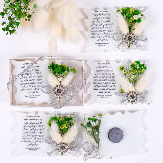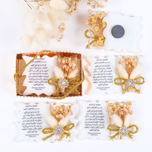 Personalized Ayatul Kursi Magnet Favor with Natural Dried Flower