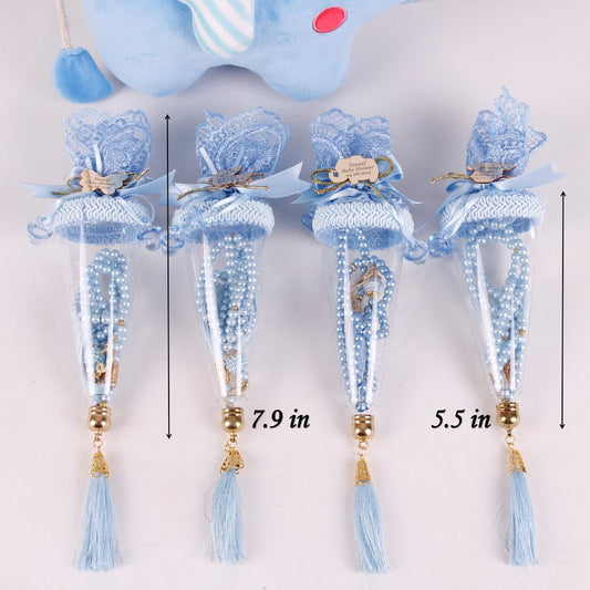 Personalized Prayer Beads Baby Shower Favor for Boy in Cone Gift Box