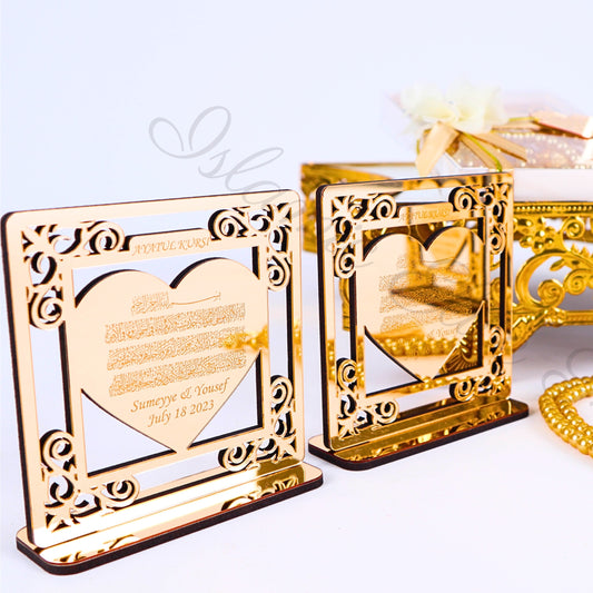 Personalized Wedding Favor Ayatul Kursi on Stand Gold Mirror Frame Cut