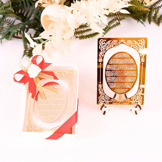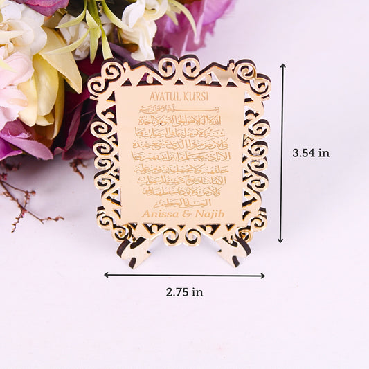 Personalized Wedding Favor Ayatul Kursi on Stand Gold Acrylic Mirror