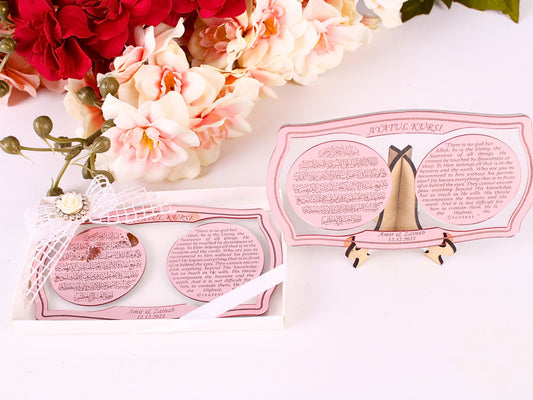 Personalized Wedding Favor Ayatul Kursi on Stand English Arabic Rose
