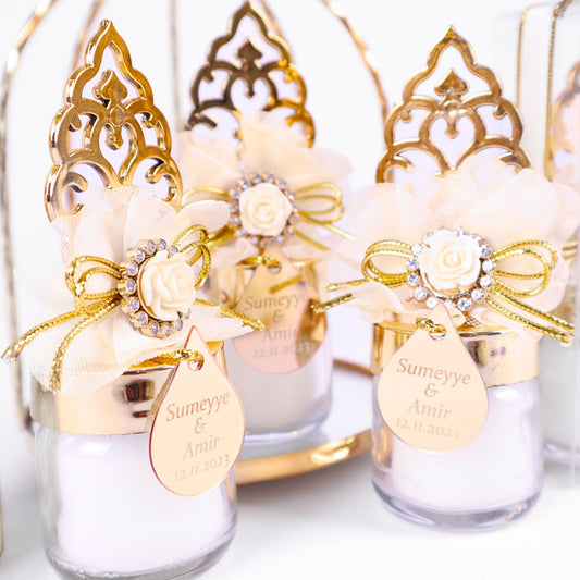 Personalized Wedding Favor Glass Candle Holder Gold Theme Flowered