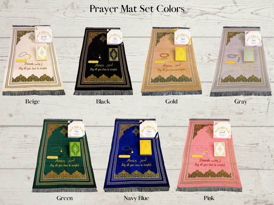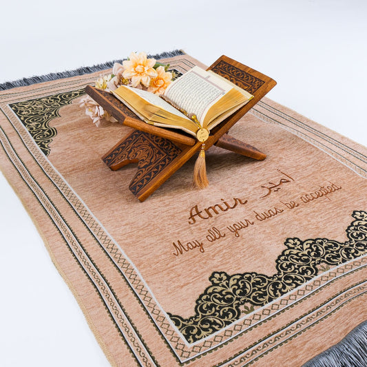 Personalized Chenille Prayer Mat Quran Tasbeeh Islamic Lux Gift Set