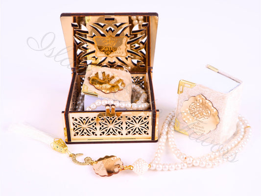 Personalized Mini Quran Tasbeeh Set with Wooden Box Wedding Party Favors Gifts