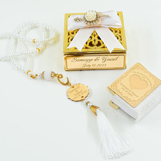 Personalized Luxury Silver Box Mini Quran Pearl Tasbeeh Wedding Favor