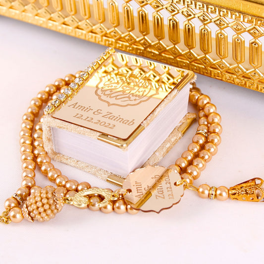 Personalized Luxury Mini Quran Tasbeeh Set Wedding Favor Pearl Decor