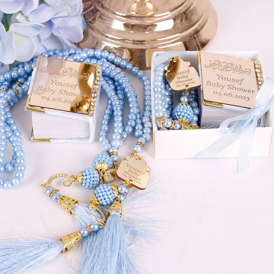 Personalized Mini Quran Pearl Prayer Beads Baby Shower Favor for Boys