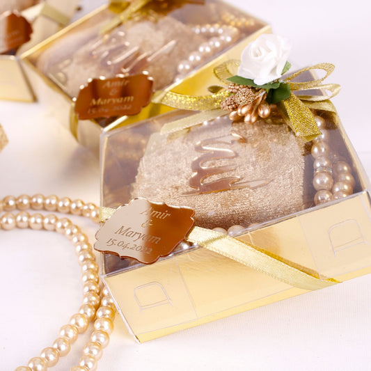 Personalized Velvet Mini Quran Pearl Tasbeeh Prism Box Wedding Favor