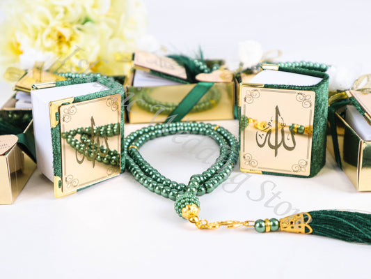 Personalized Mini Quran Tasbeeh Set with Mica Box Wedding Party Favors Gifts