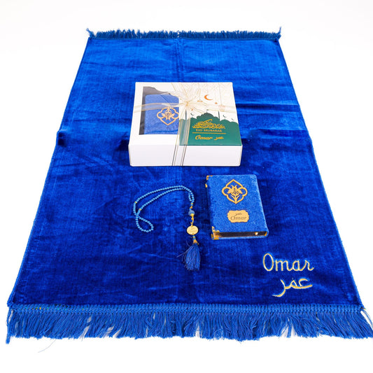 Personalized Elegant Velvet Prayer Mat Quran Tasbeeh Islamic Gift Set