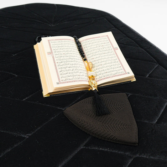 Padded Thick Prayer Mat Quran Tasbeeh Kufi Islamic Muslim Gift Set