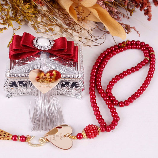 Personalized Pearl Prayer Beads Tasbeeh Lux Silver Box Wedding Favor