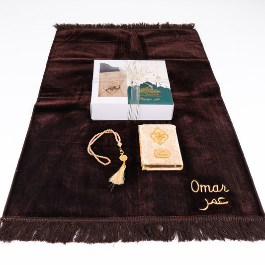 Personalized Elegant Velvet Prayer Mat Quran Tasbeeh Islamic Gift Set