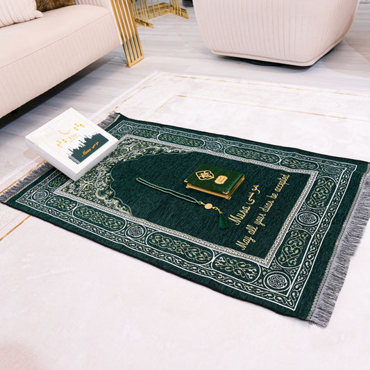 Personalized Chenille Prayer Mat Quran Tasbeeh Islamic Muslim Gift Set