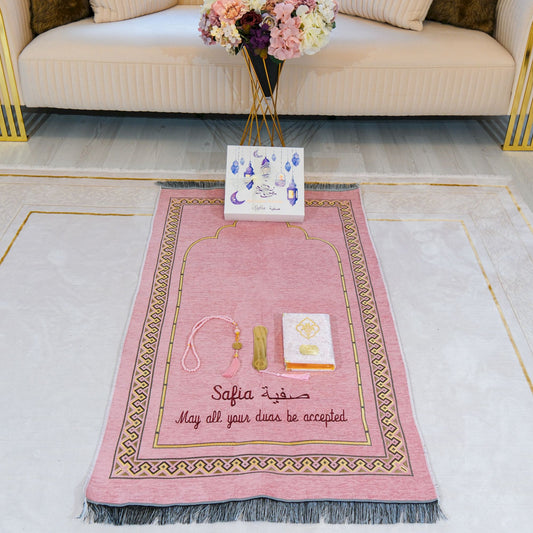 Personalized Flowery Prayer Mat Quran Tasbeeh Islamic Muslim Gift Set