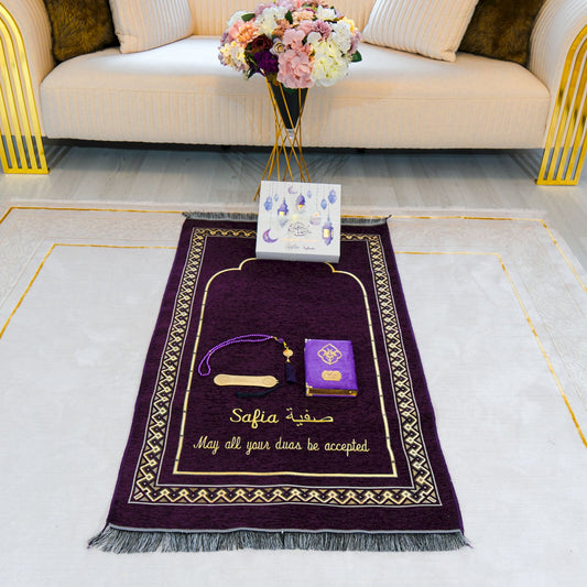 Personalized Diamond Prayer Mat Quran Tasbih Bookmark Islamic Gift Set