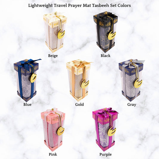 Personalized Travel Prayer Mat Tasbeeh Sets in different designs and colors are best for Anniversary, Wedding, Ramadan, Eid, Birthday, Mother's Day, Father's Day, Valentine's Day.